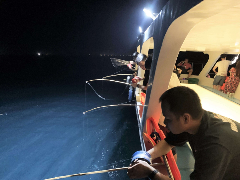 - 19:00 - 20:30: Thời gian để bạn trổ tài và chờ đợi những "chiến lợi phẩm" đầu tiên. Cảm giác giật được một con mực lá hay mực ống sẽ vô cùng hồi hộp.